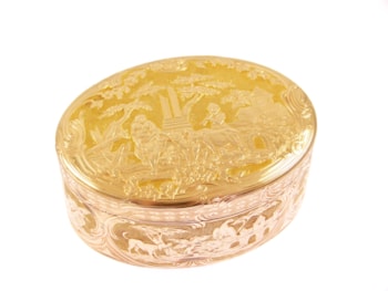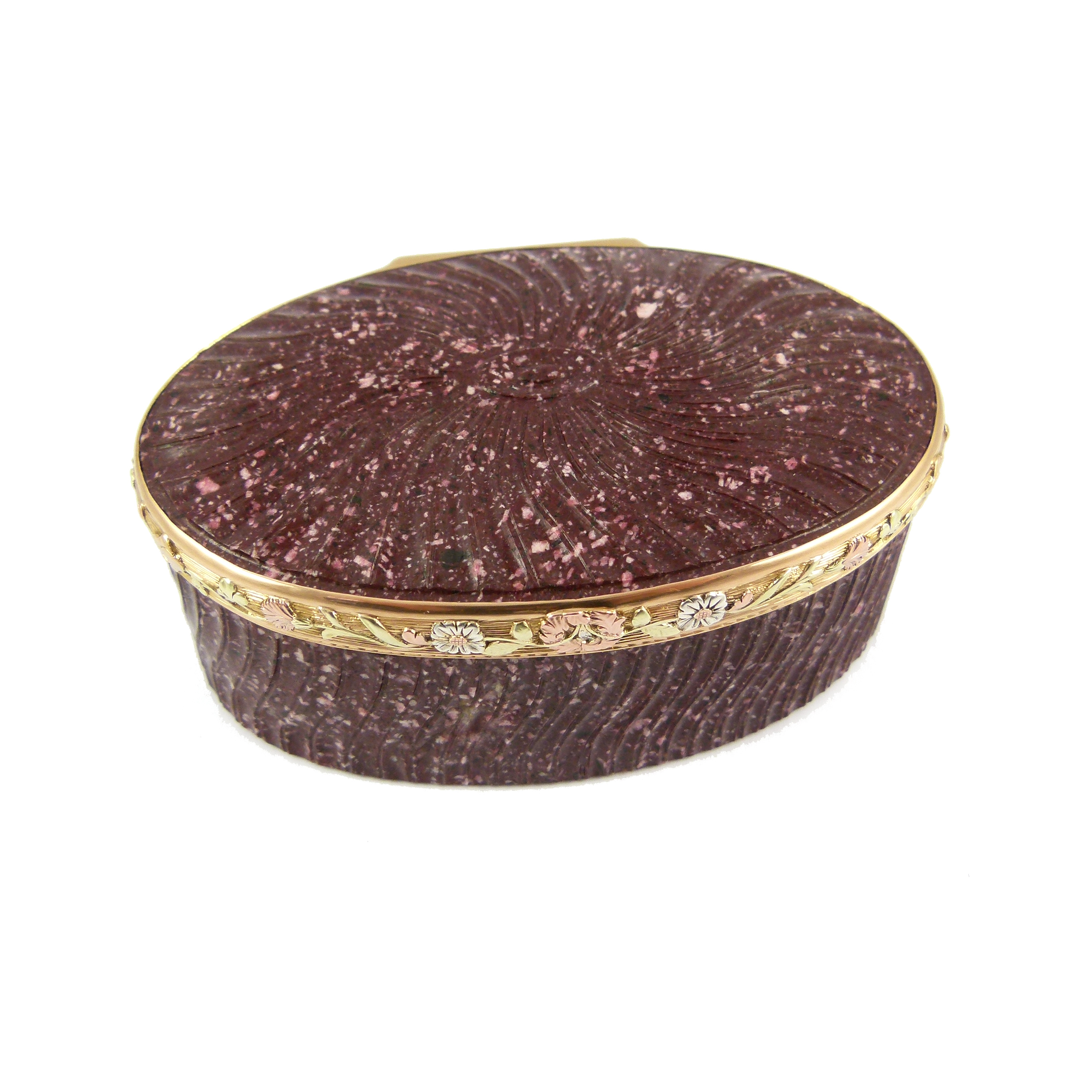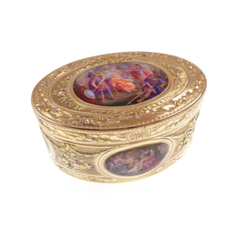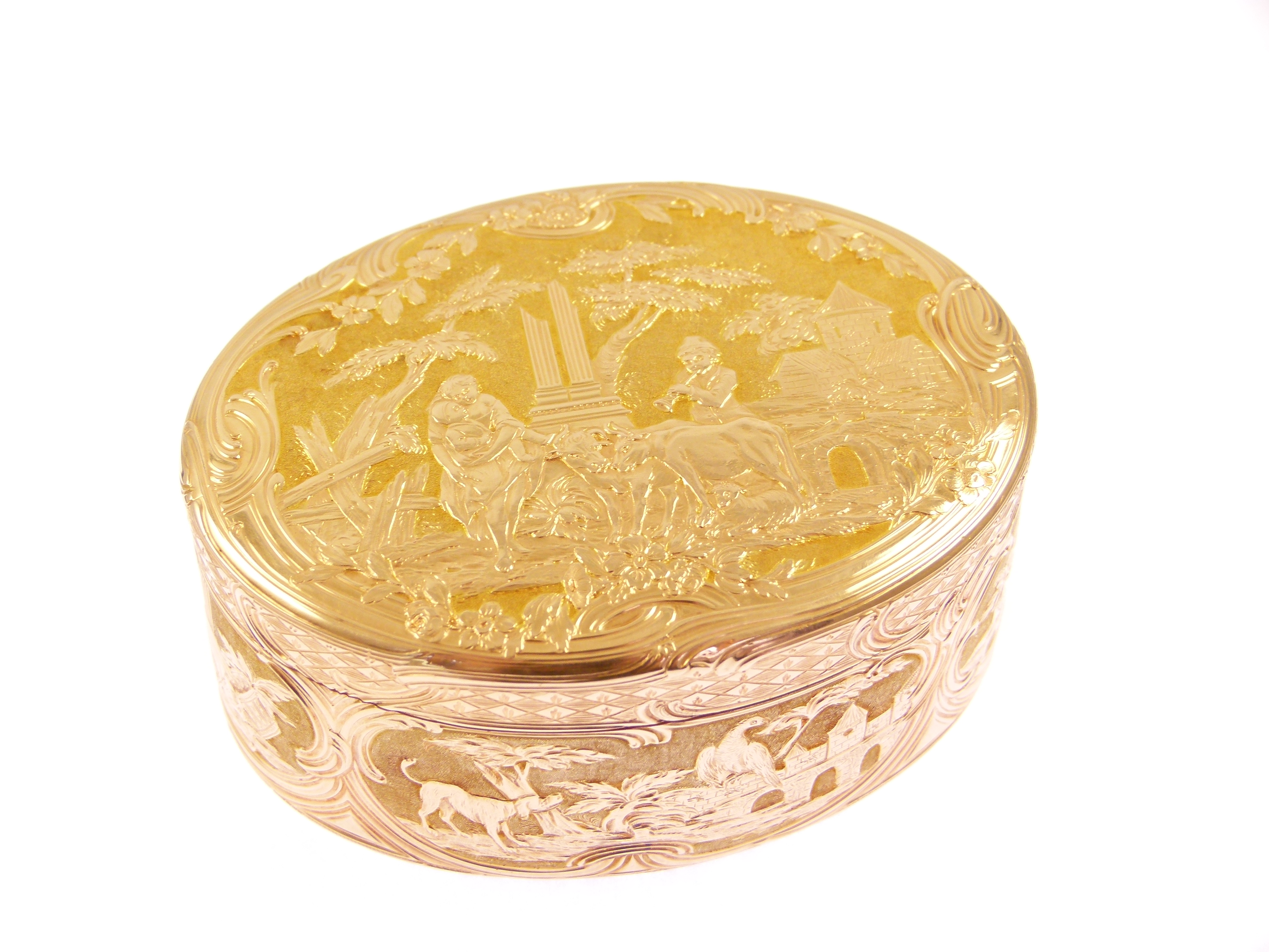 18th century German oval vari-colour gold and enamel box with figural scenes, Hanau, c.1775,