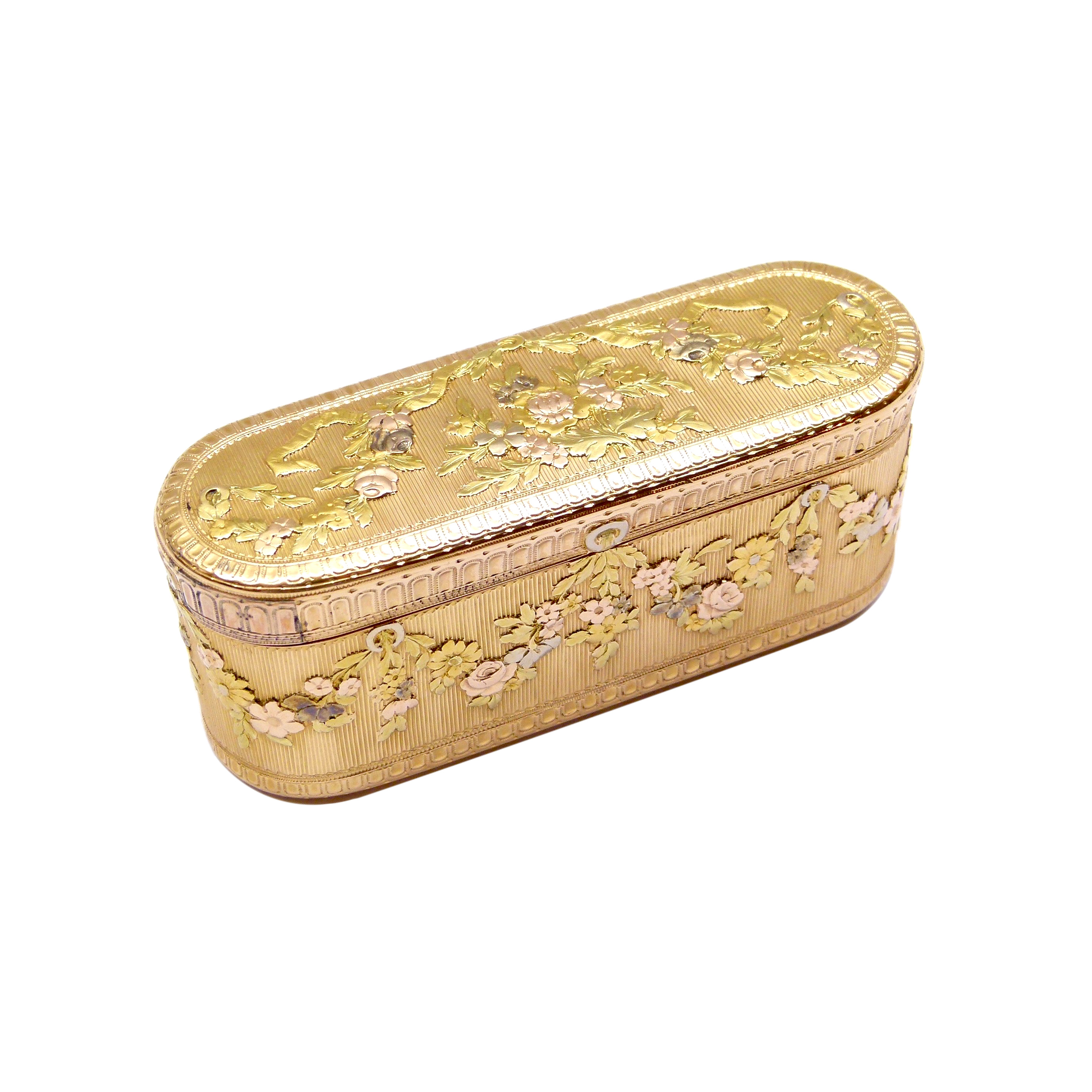 Louis XV coloured gold oval box, Paris 1758, attributed to Henry Daniel Robineau