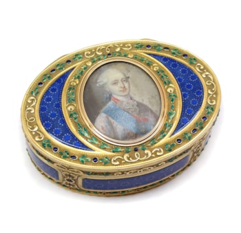 Louis XVI oval enamel and gold box with portrait miniature by Alexis Proffit, Paris 1786, the miniature of the duc de Penthievre by Nicholas Halle (French fl. 1782-1795),