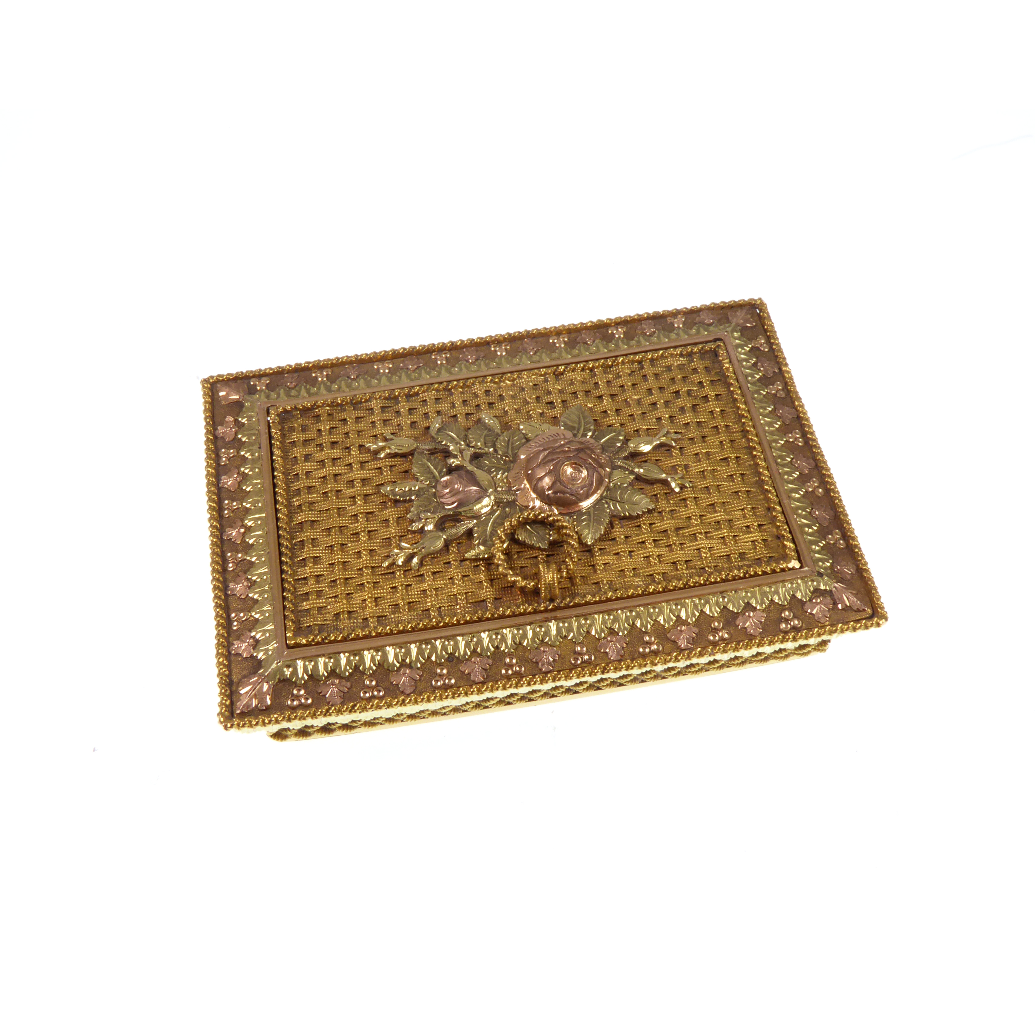 19th century Russian shaped rectangular four colour gold box, St. Petersburg c.1835,