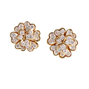 Pair of diamond and gold floral cluster earrings by Van Cleef & Arpels, made in France probably for New York retail, the flowers of stylised hydrangea design,
