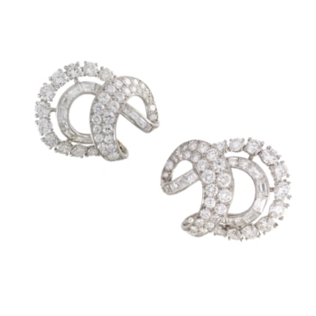 Pair of diamond openwork looped scroll earrings by Cartier, London, probably made in Paris for London retail,