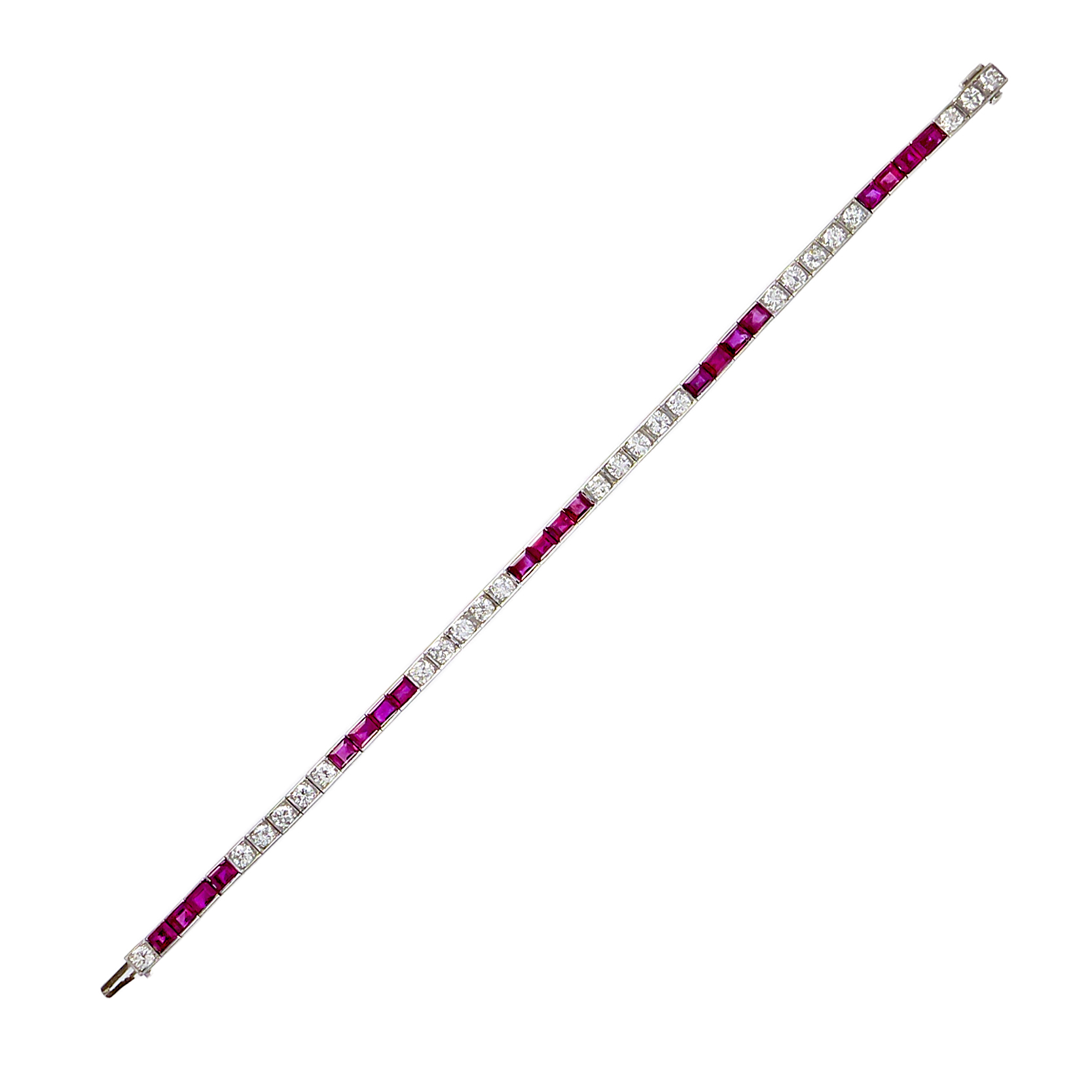 Diamond and ruby line bracelet, alternating groups of four rubies and five diamonds,