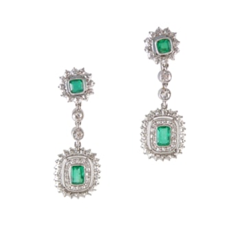 Pair of early 20th century emerald and diamond cluster pendant earrings, English c.1910, possibly by Garrard & Co.,