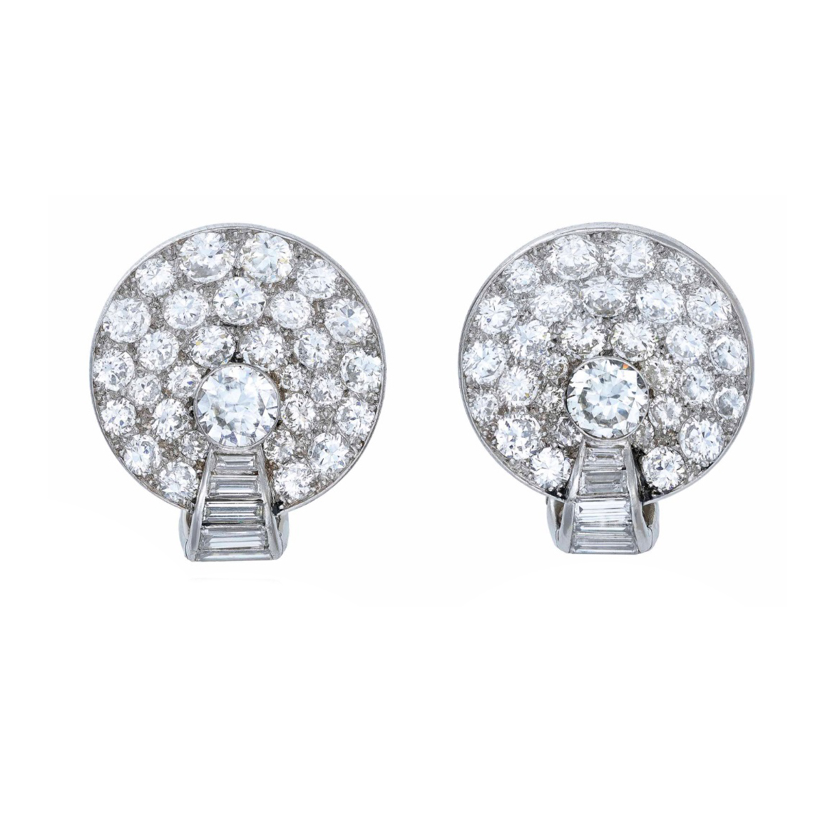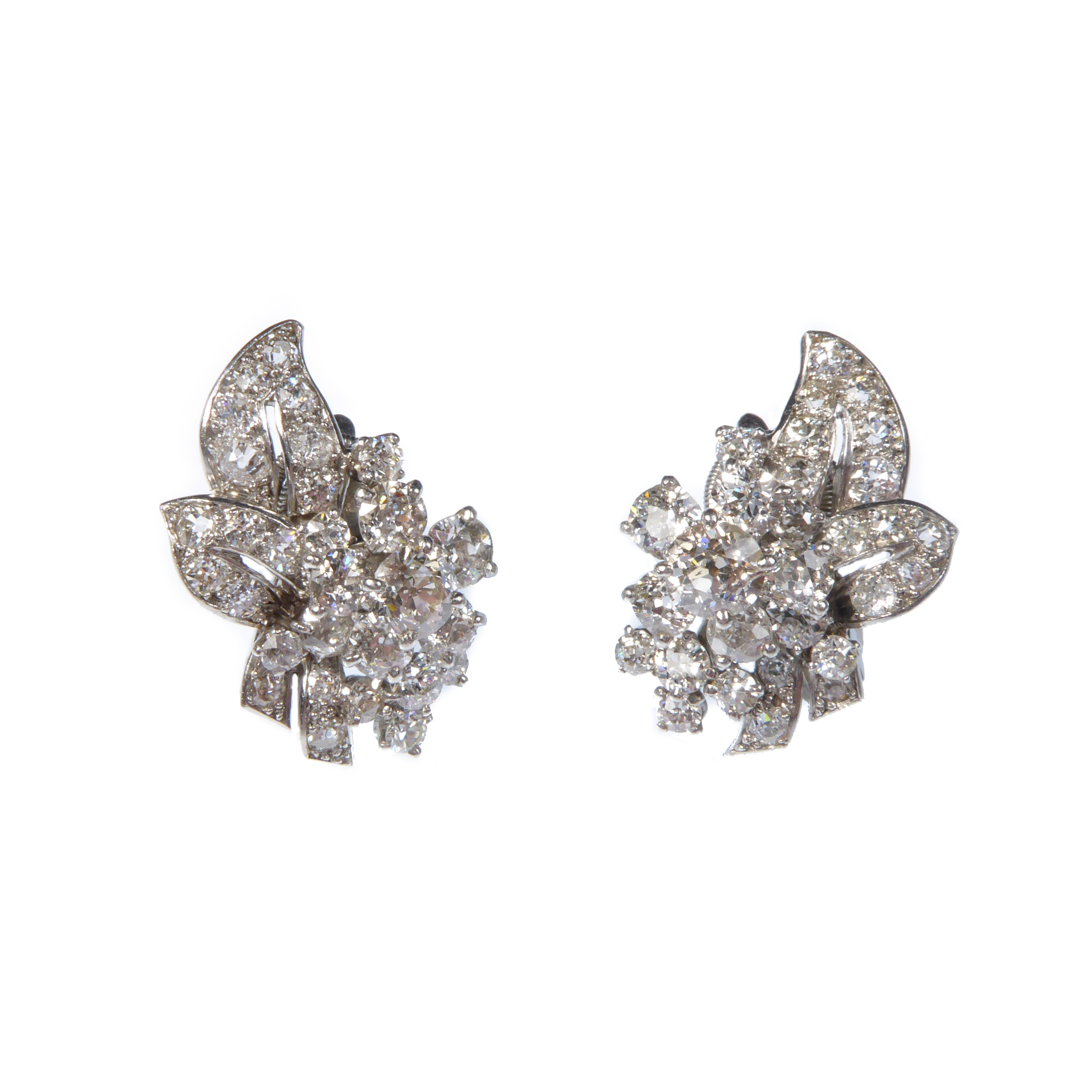 Pair of Late Art Deco diamond floral cluster earrings by Cartier, London c.1938,