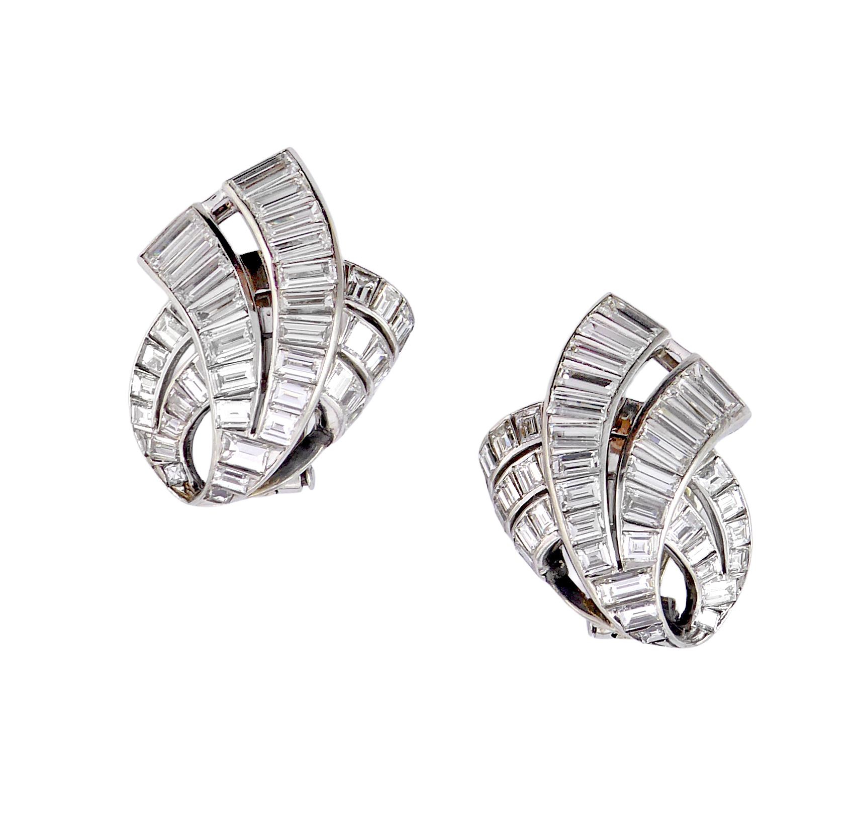 Pair of diamond openwork looped scroll earrings by Cartier, London, probably made in Paris for London retail,