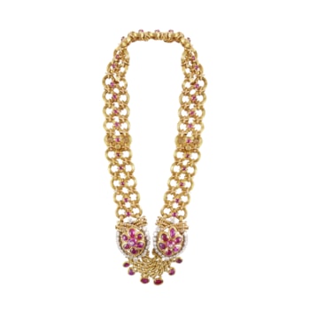 Gold, ruby and diamond collar chain necklace by Marchak, Paris, converting to form two bracelets,