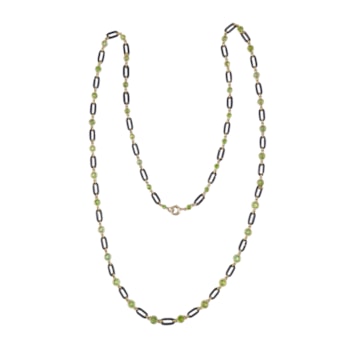 Antique peridot, white enamel and 18ct gold pendant chain necklace, c.1890, with fancy hexagonal cut peridots,