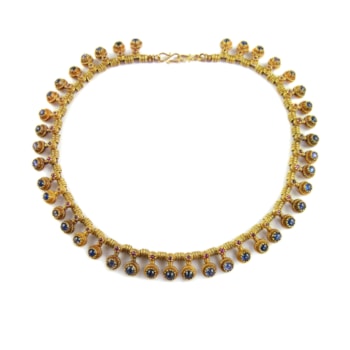 19th century gold Etruscan revival leaf fringe necklace, Italian or English c.1870,