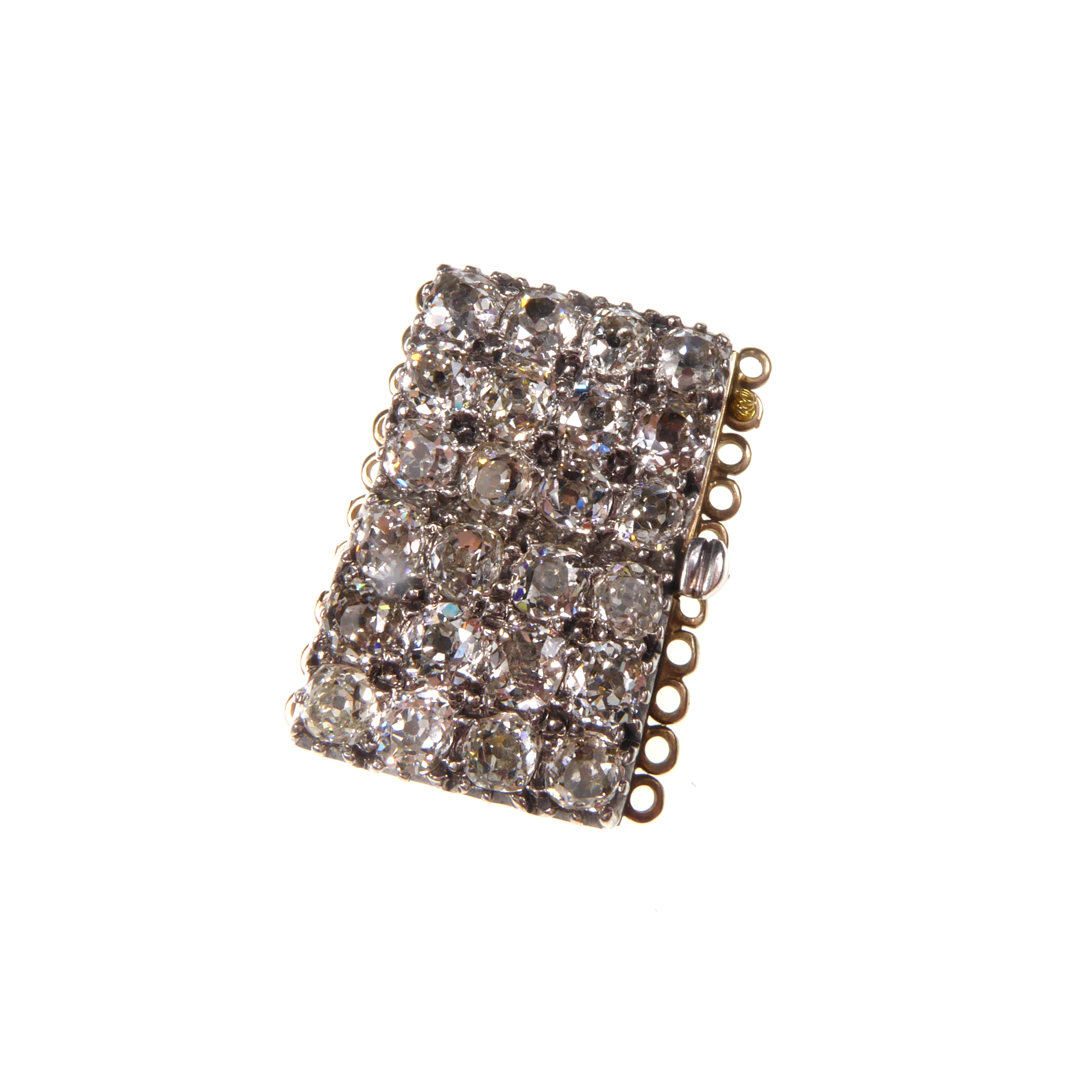 19th century pave diamond set rectangular panel clasp, c.1860, with fittings for ten rows,