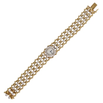18ct gold and diamond 'Resille' mesh strap watch by Cartier, Paris 1968, of stylised chainmail design,
