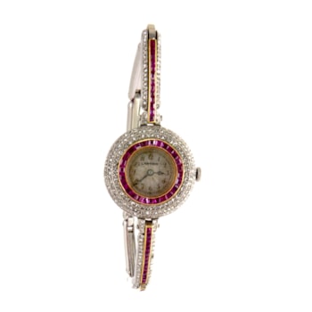 Early 20th century ruby and diamond expanding bracelet wristwatch by Cartier, Paris c.1910, the circular dial silvered and with Roman numerals,