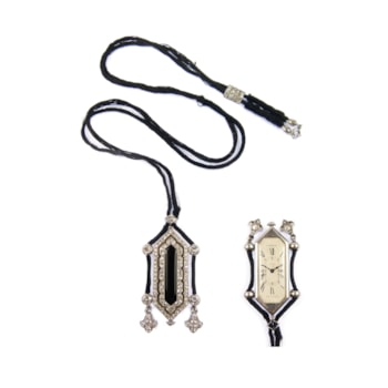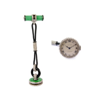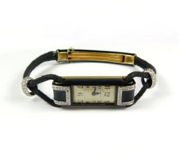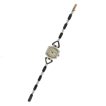 Art Deco diamond and onyx bead 'baguette' lady's wristwatch by Cartier, London,