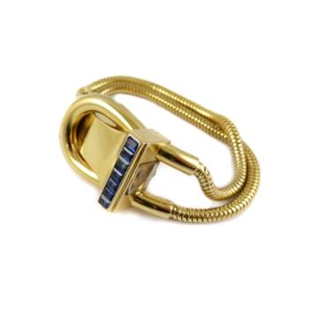 18ct gold and sapphire retro wristwatch of hook and eye design by Verger Freres probably for Cartier New York,