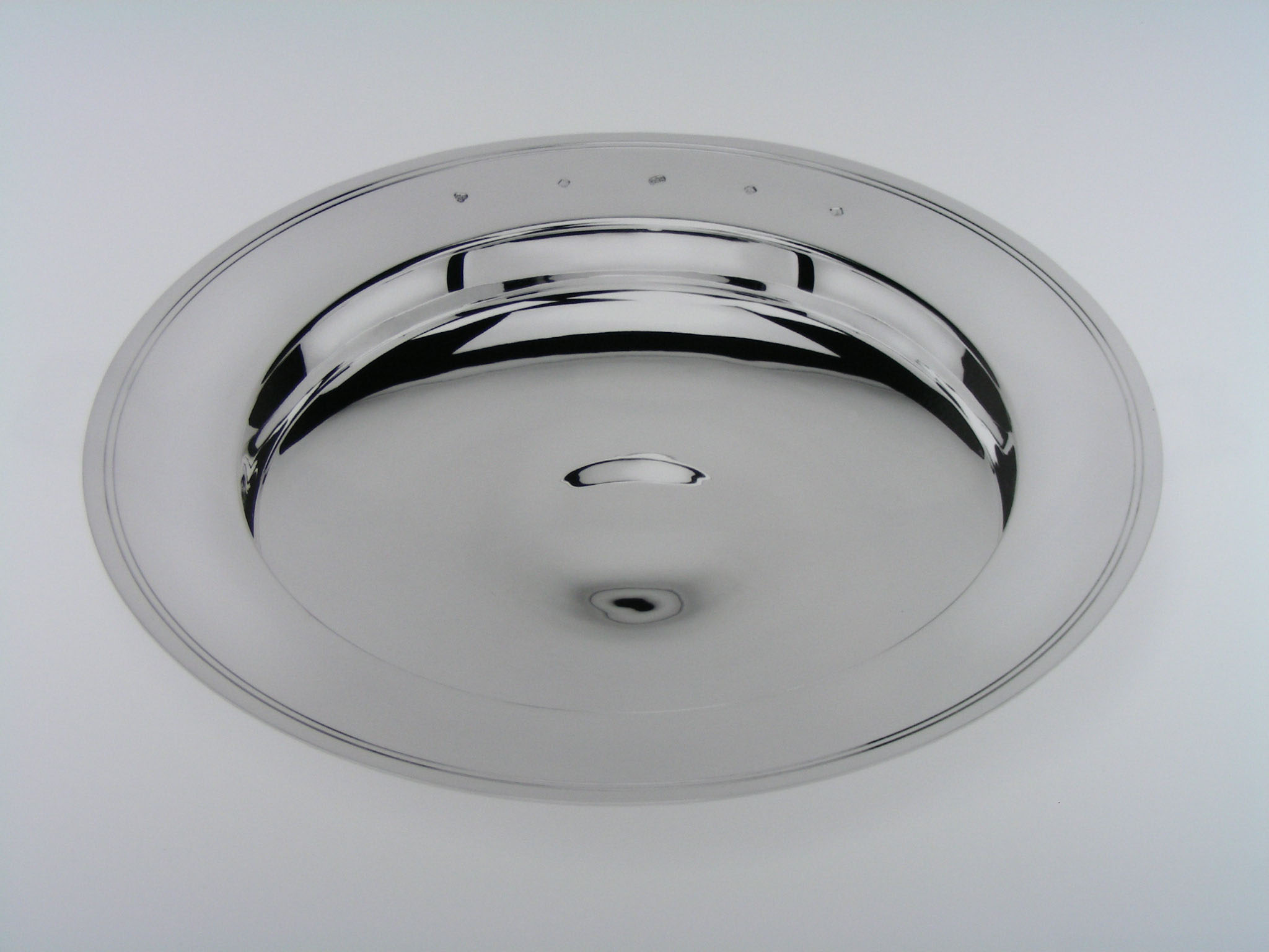Modern silver 16'' Armada dish, plain round with double reeded line to the broad rim