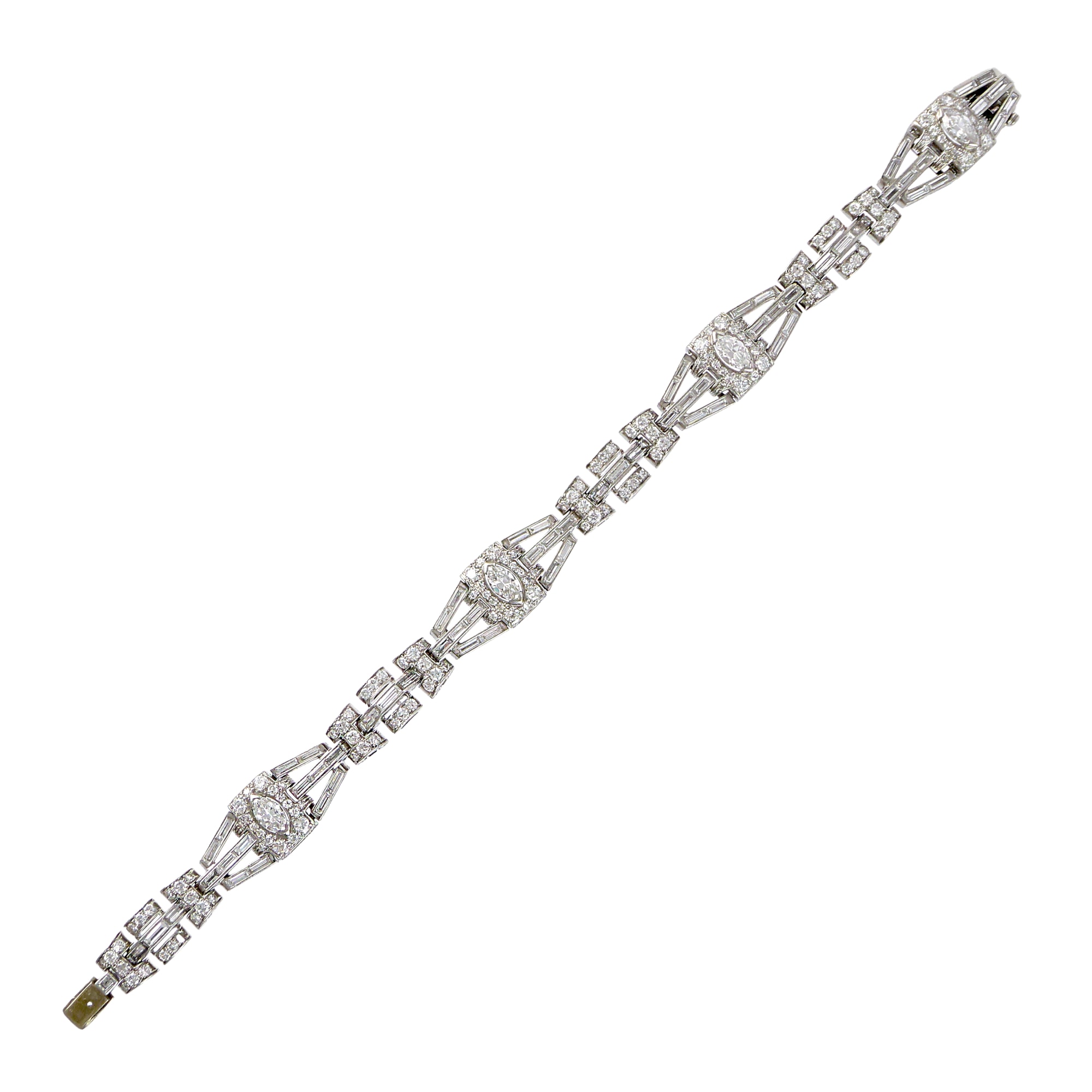 Art Deco diamond strap bracelet with baguette line lozenge motifs by Cartier,