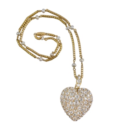 Late 19th century pave diamond and gold heart pendant-locket, on an associated gold and pearl chain necklace, both c.1870-1895, the locket possibly French,