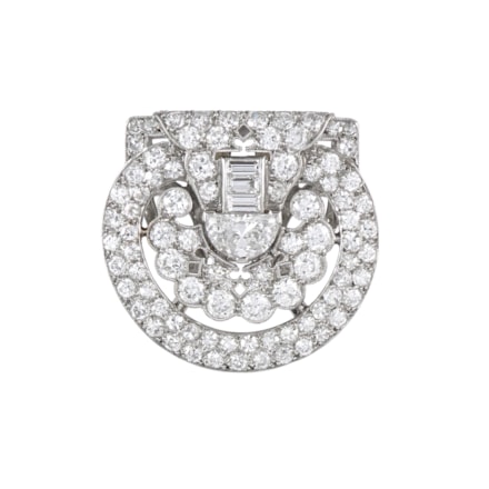 Early 20th century three stone rectangular cut ruby and diamond cluster ring by Tiffany, c.1910