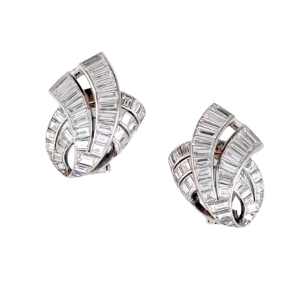 Pair of diamond and gold floral cluster earrings by Van Cleef & Arpels, made in France probably for New York retail, the flowers of stylised hydrangea design,