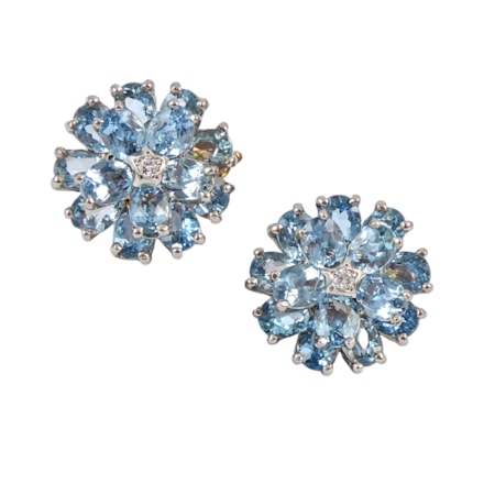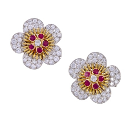 Pair of emerald and diamond cluster earrings by Cartier, Paris, each with an oval Colombian emerald of mixed cut, approximately 1.15 and 1.05ct,