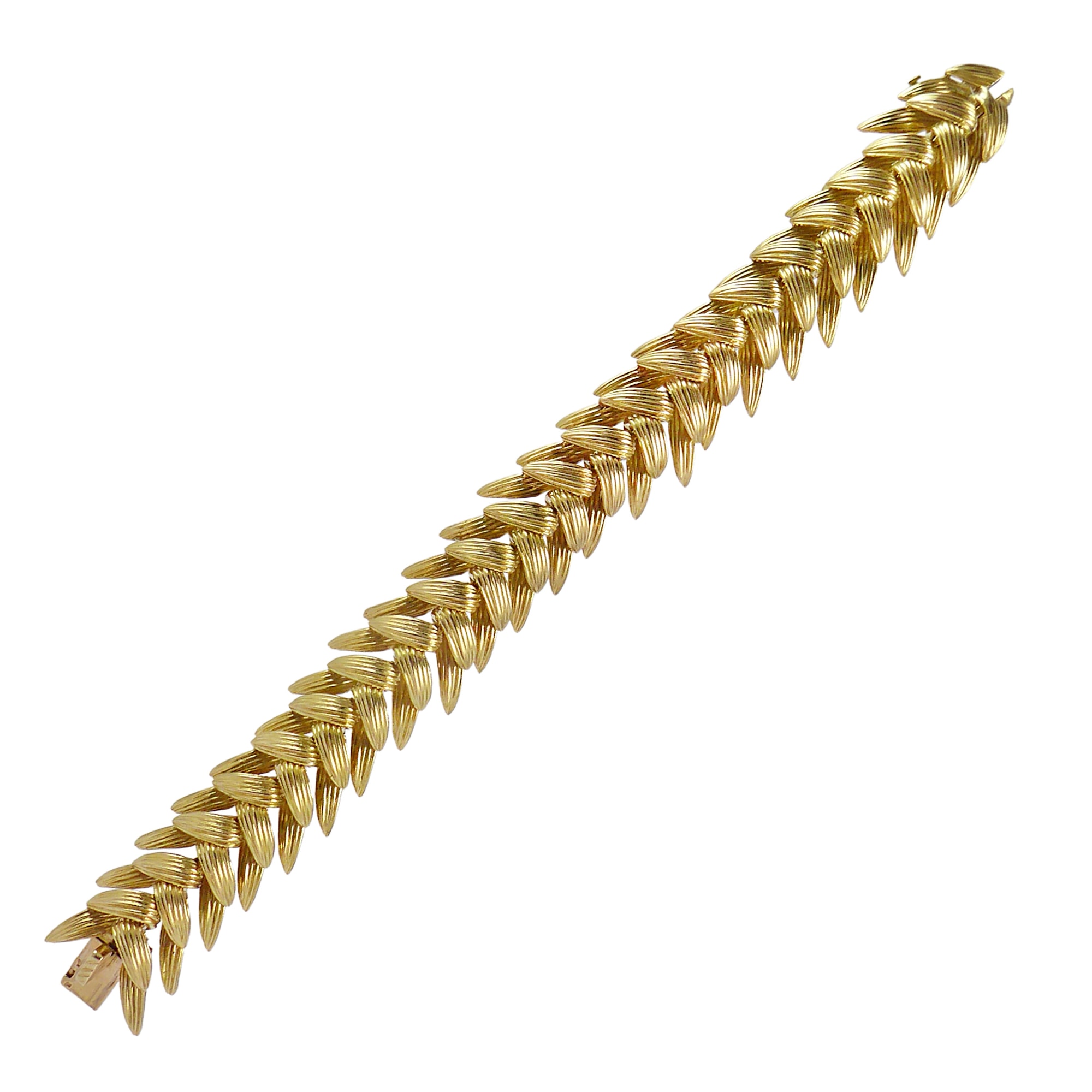 Mid-20th century stylised braid bracelet by Van Cleef & Arpels, Paris c.1960, formed of overlapping reeded leaf sections,
