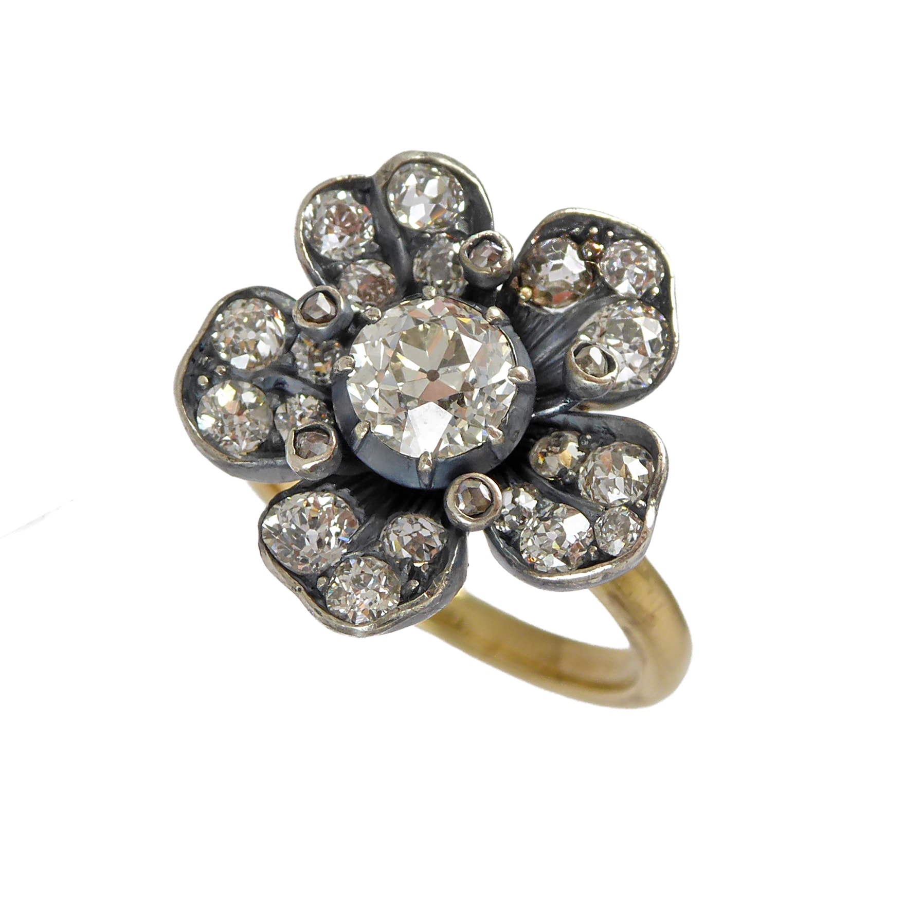 Late 19th century diamond flowerhead cluster ring, c.1890, the flower in the form of a dog rose,