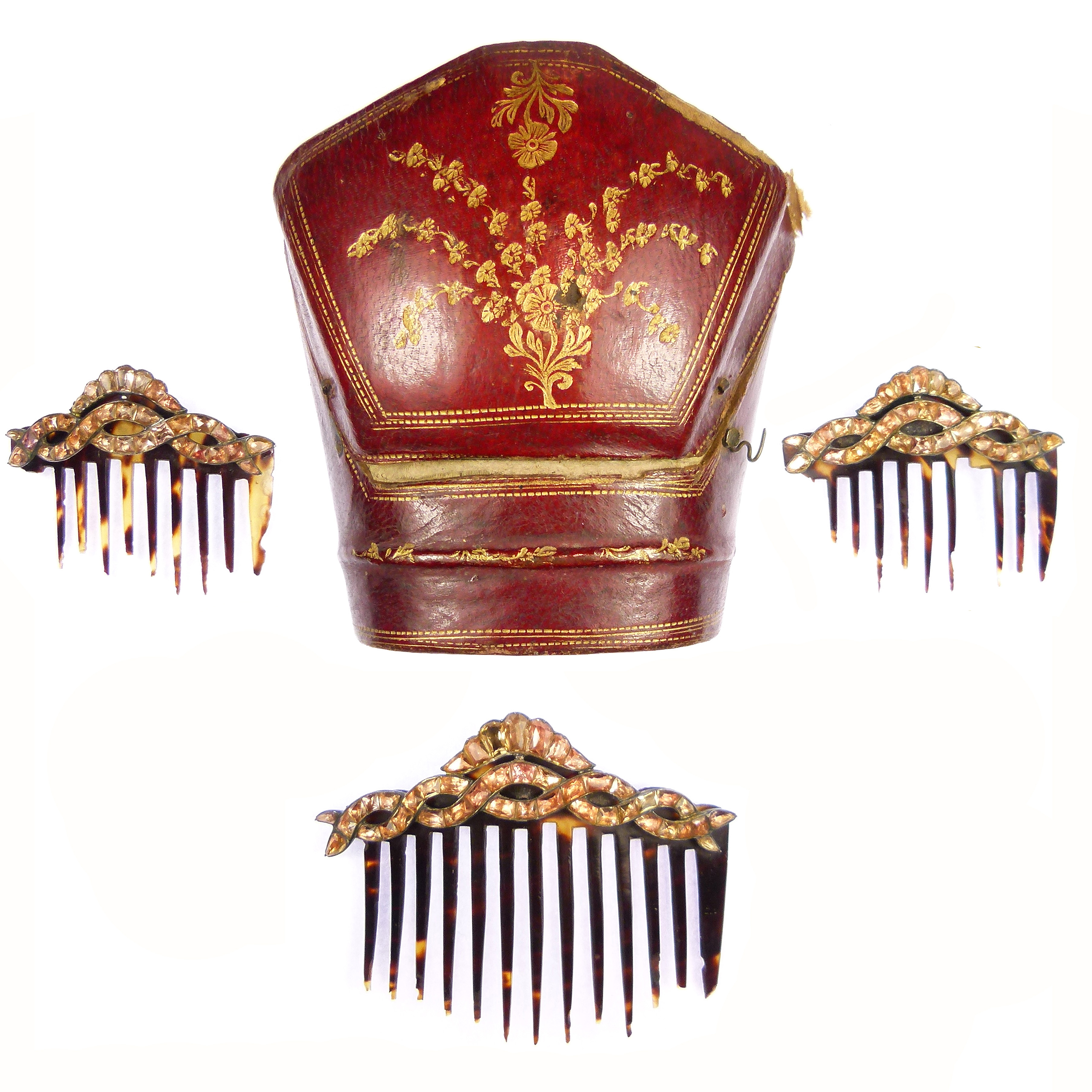 Set of three 18th century golden orange topaz graduated hair combs, Portuguese c.1760, one large and two small,