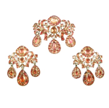 18th century orange foiled topaz triple drop pendant and pair of earrings en suite, Portuguese c.1760,Ref No. 65899 Details