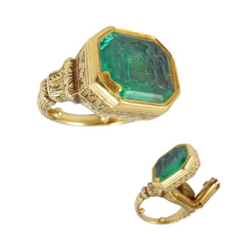 Early 19th century emerald intaglio and gold seal ring, English c.1820, for William Ward, 3rd Viscount Dudley and Ward,