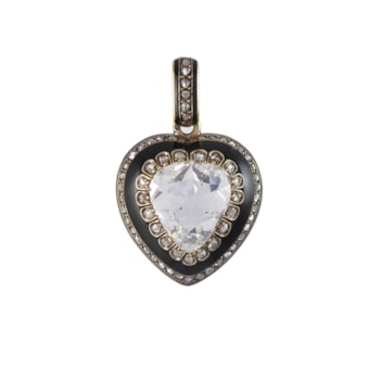 19th century diamond, black enamel and gold heart shaped locket pendant, French c.1850, the front featuring the principal old cut diamond of shield outline,